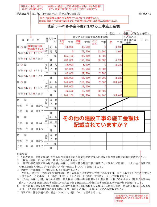 ポイント:問題になってくるのは直前3年の各事業年度における工事施工金額